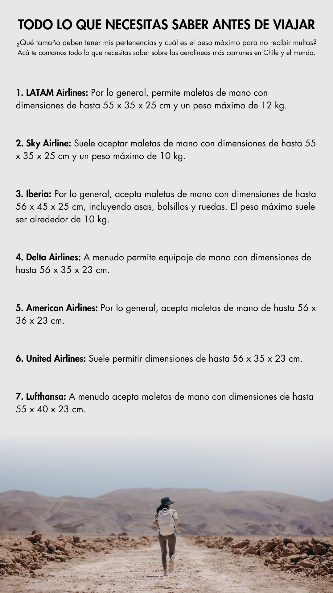 Tamaños Permitidos como Equipaje de Mano por Aerolíneas