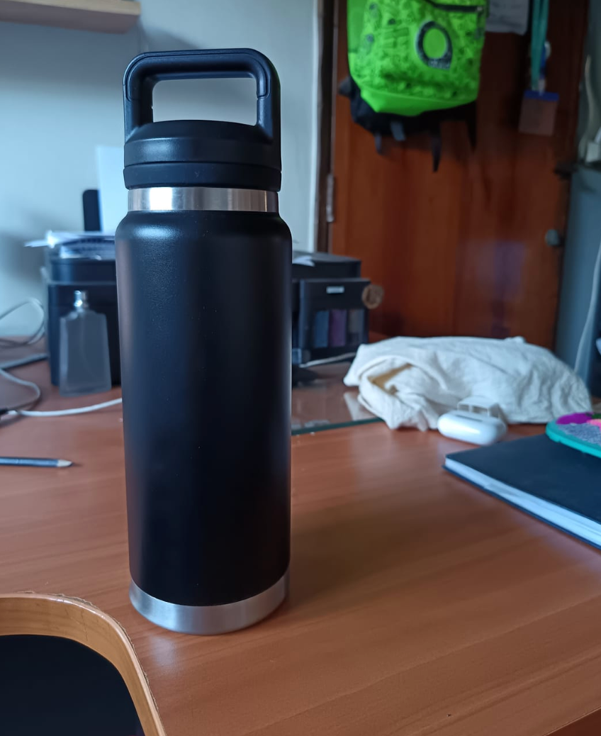 Posee una doble pared de acero inoxidable que mantiene las temperaturas frías por 24 horas y las calientes por hasta 12. Ideal para café, té, agua o cualquier tipo de bebida.