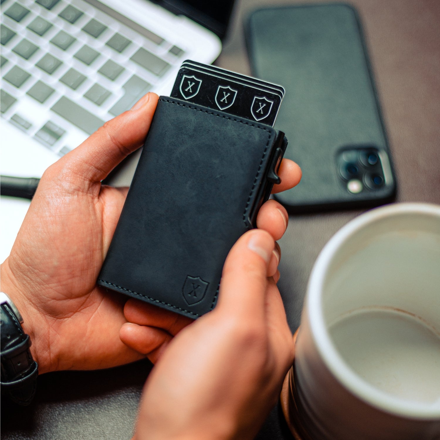 Simple, elegante y compacto. Diseñado para ahorrar espacio y simplificarte la vida. Todas tus tarjetas a un botón de distancia. Haremos que pagar sea entretenido y deslumbres a todos cada vez que muestres tu billetera. Producto vegano, ningún animal fue involucrado en el proceso.