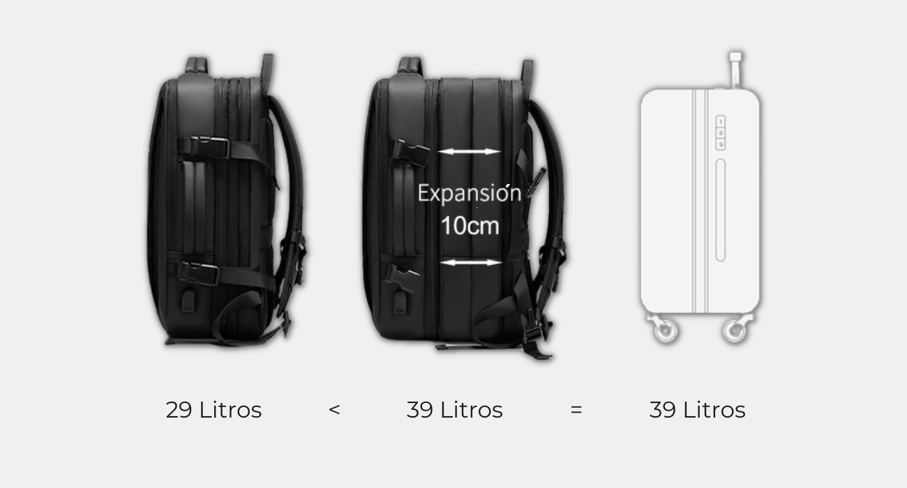 - Diseños expandibles de 29 Litros a 39 Litros.