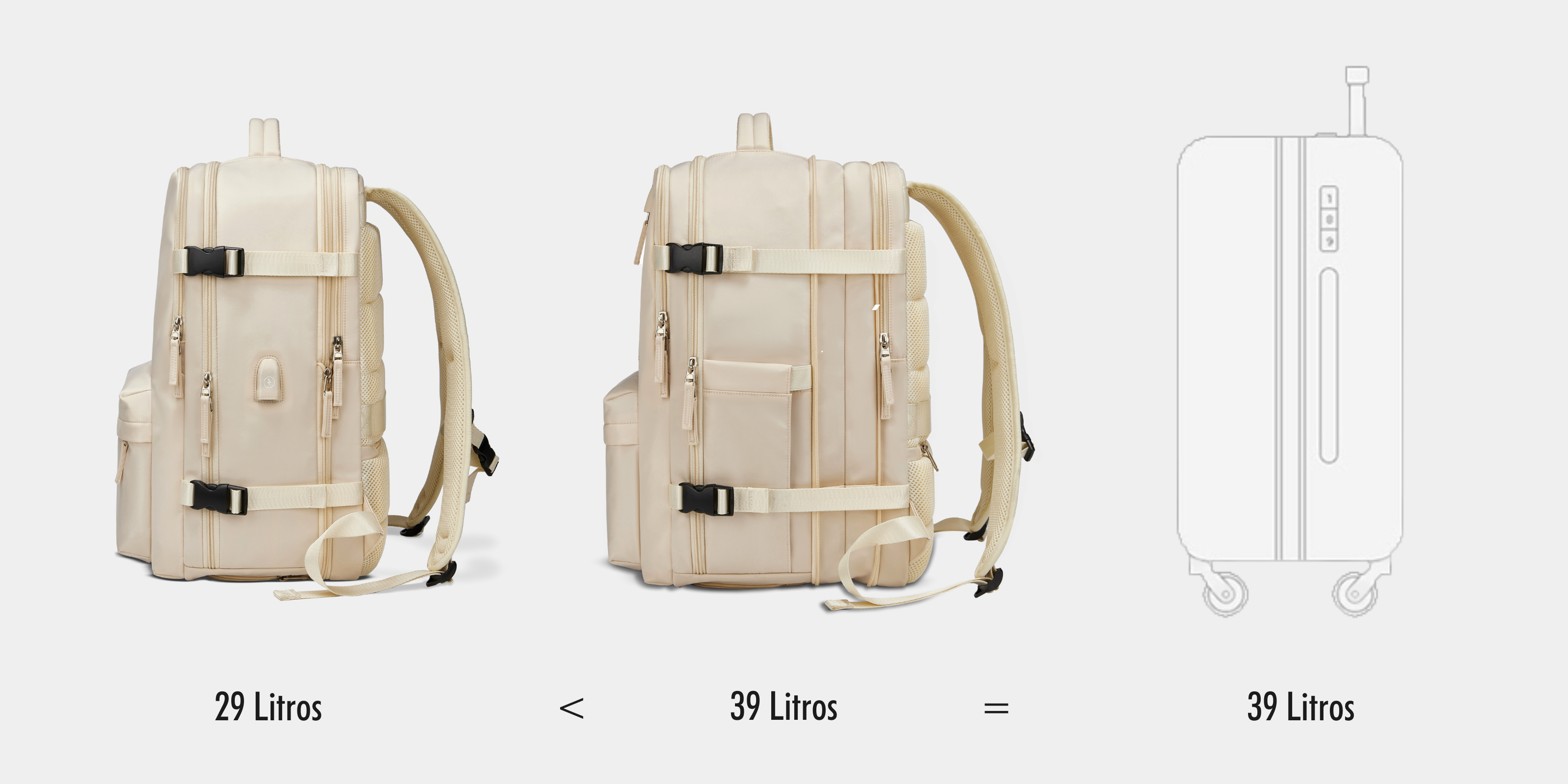 La mochila esta aprobada como equipaje de manos por todas las aerolíneas. Con expansión las medidas son 50 x 35 x 28 cm cm. Haz click aquí para ver nuestro blog con las medidas permitidas por las aerolíneas más comunes.